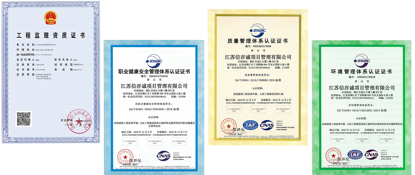 江蘇信亦誠項(xiàng)目管理有限公司前身為鎮(zhèn)江信誠建設(shè)監(jiān)理有限公司,成立于1994年6月,是國家實(shí)行建設(shè)工程監(jiān)理制度成立試點(diǎn)單位,是鎮(zhèn)江市成立較早的建設(shè)監(jiān)理工程監(jiān)理企業(yè)之一。公司具有房屋建筑工程監(jiān)理資質(zhì)甲級(jí),市政公用工程監(jiān)理資質(zhì)乙級(jí),電力工程監(jiān)理乙級(jí),化工石油工程監(jiān)理資質(zhì)乙級(jí)。人防工程監(jiān)理資質(zhì),造價(jià)咨詢資質(zhì),提供招標(biāo)代理服務(wù);公司注冊(cè)資金1000萬元。自公司成立以來,開展工業(yè)與民用建筑、公路、污水截流.輸變電線路監(jiān)理業(yè)務(wù),完成各類住宅工程監(jiān)理3000多萬平方米;完成各類工業(yè)用房監(jiān)理工程600多萬平方米;完成學(xué)校、賓館、酒店、商場、辦公等公建項(xiàng)目300多個(gè)。有多項(xiàng)工程獲省市優(yōu)秀獎(jiǎng)項(xiàng),并多次獲鎮(zhèn)江市人民政府表彰。